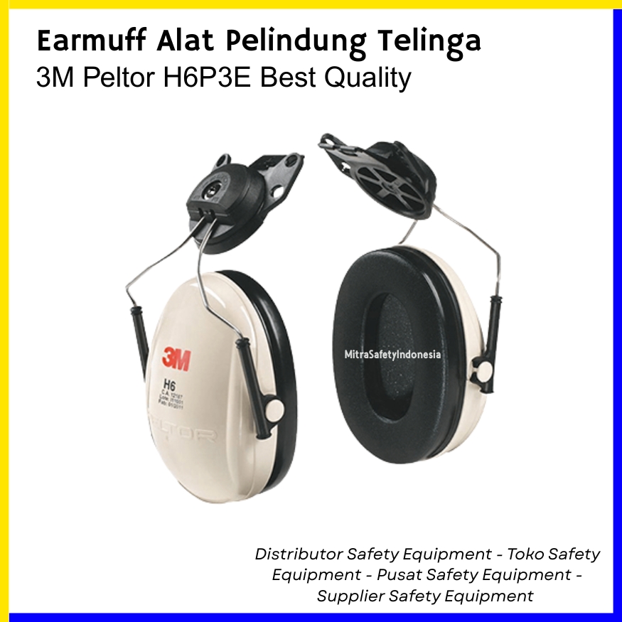 Earmuff 3M peltor H6P3E yang bisa pasang pada helm safety Anda. Produk earmuff ini adalah produk 3M dan bisa digunakan pada tingkat kebisingan hingga 95 dBA.