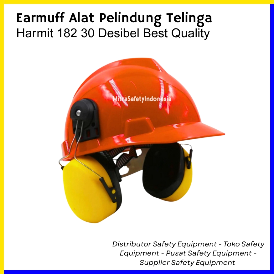 Earmuff di mitra safety biasanya di aplikasikan pada lingkungan kerja industri, konstruksi, pertambangan, atau area dengan mesin berisik. Penutup telinga didesain menyerupai kuping yang sepenuhnya tertutup dengan bantalan empuk di sekeliling ear cup.