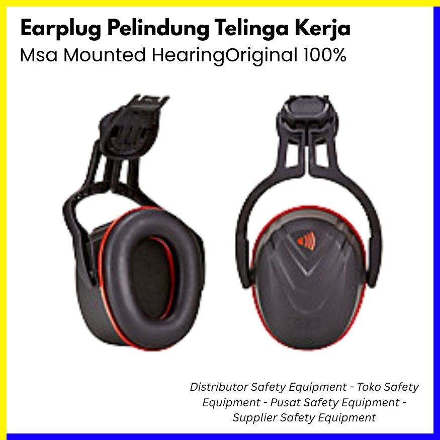 Earmuff toko alat safety ini dipasang di helm keselamatan (cap-mounted) atau dipakai langsung di kepala untuk memberikan perlindungan telinga terhadap paparan suara keras.
