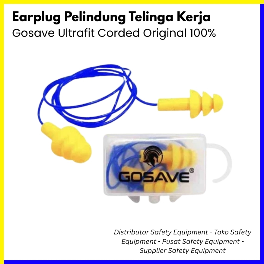 Earplug gosave ultrafit corded penutup telinga (earplug) yang dibuat untuk mengurangi intensitas suara bising yang masuk ke telinga.