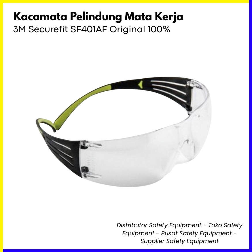 Kacamata 3M SF401AF dirancang untuk melindungi mata dari benturan partikel, debu, percikan cairan, serta paparan radiasi ultraviolet (UV). Dan produk mitra safety ini memenuhi standar keselamatan industri seperti ANSI Z87.1 dan CSA Z94.3.